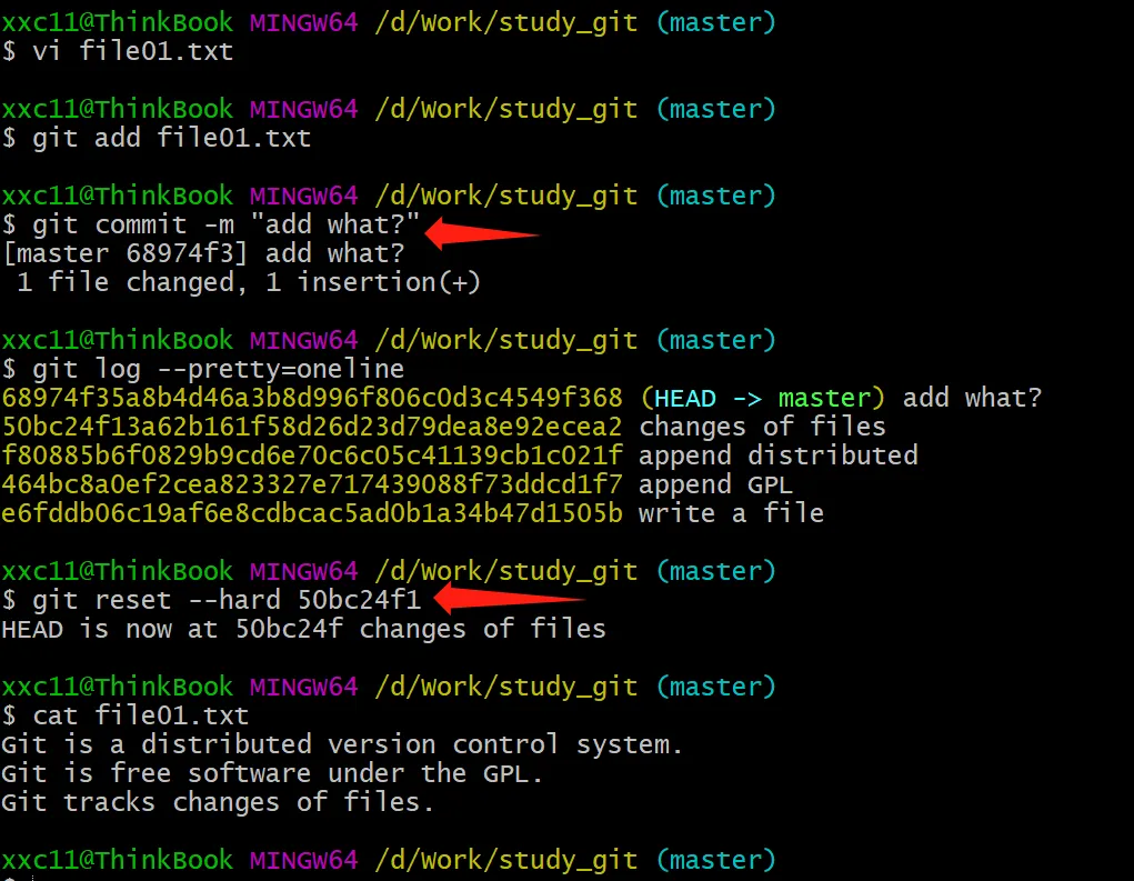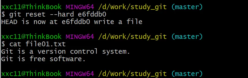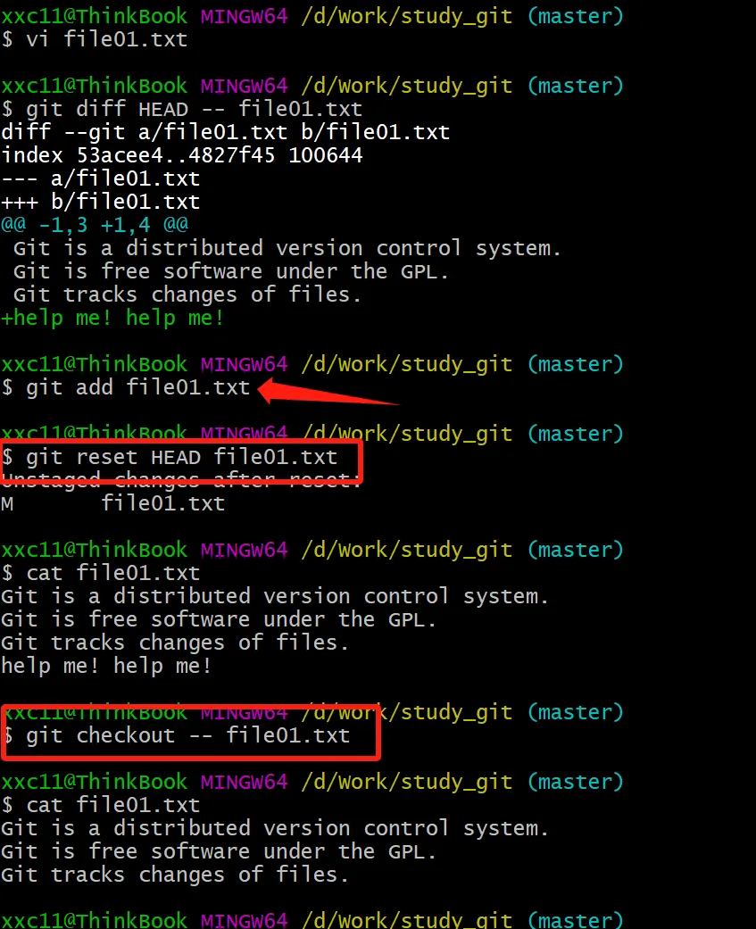 说明:不管是误删,还是修改错了,都可以使用这个命令将文件复原回来。