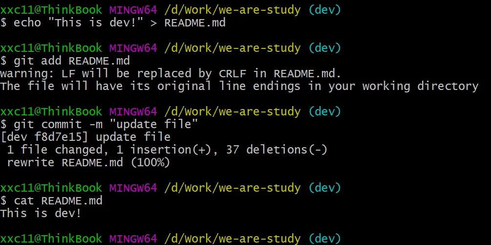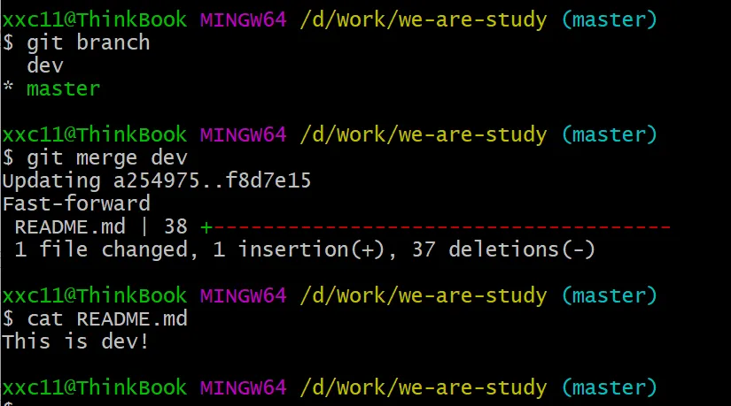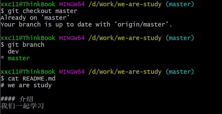 分支合并上来。再次查看README.md文件,发现是被修改过的。