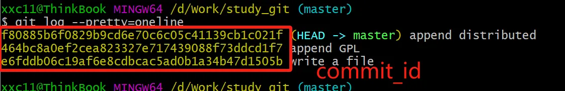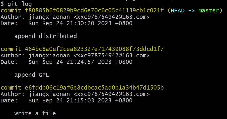 通过命令即可看到每次提交的信息。重点关注commit -m