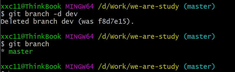 分支的使命也就完成了,可以将其删除,当然你也可以继续在上面工作。