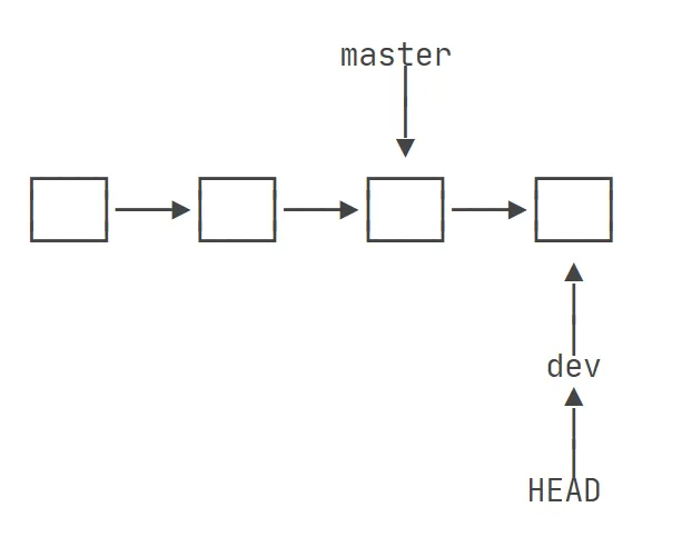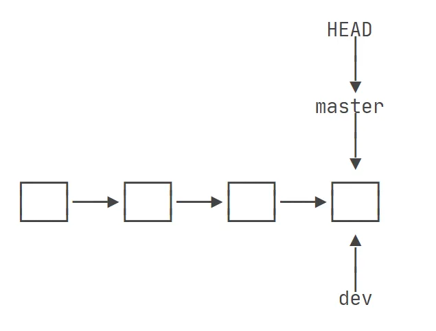 如果创建了新的分支,那么会在master的位置新创建一条分支,比如dev