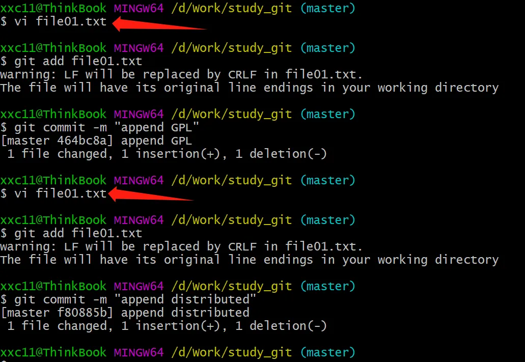 ,可反复多次使用,添加多个文件;最后可使用命令git commit -m <message>
