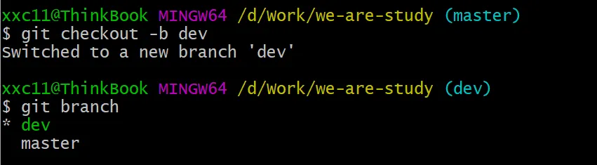 # `git switch`命令加上`-c`参数表示创建并切换,相当于以下两条命令