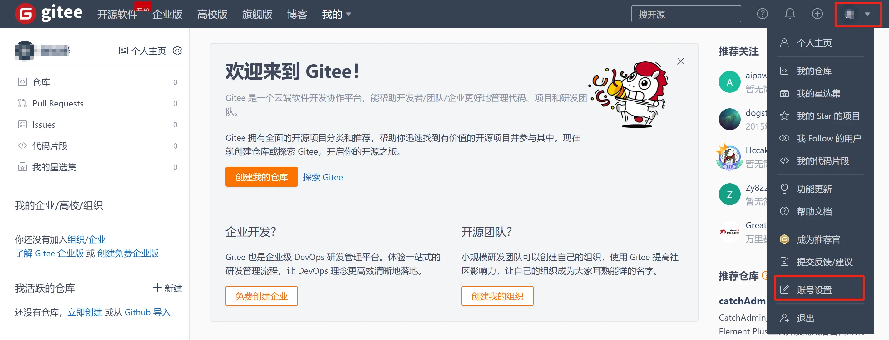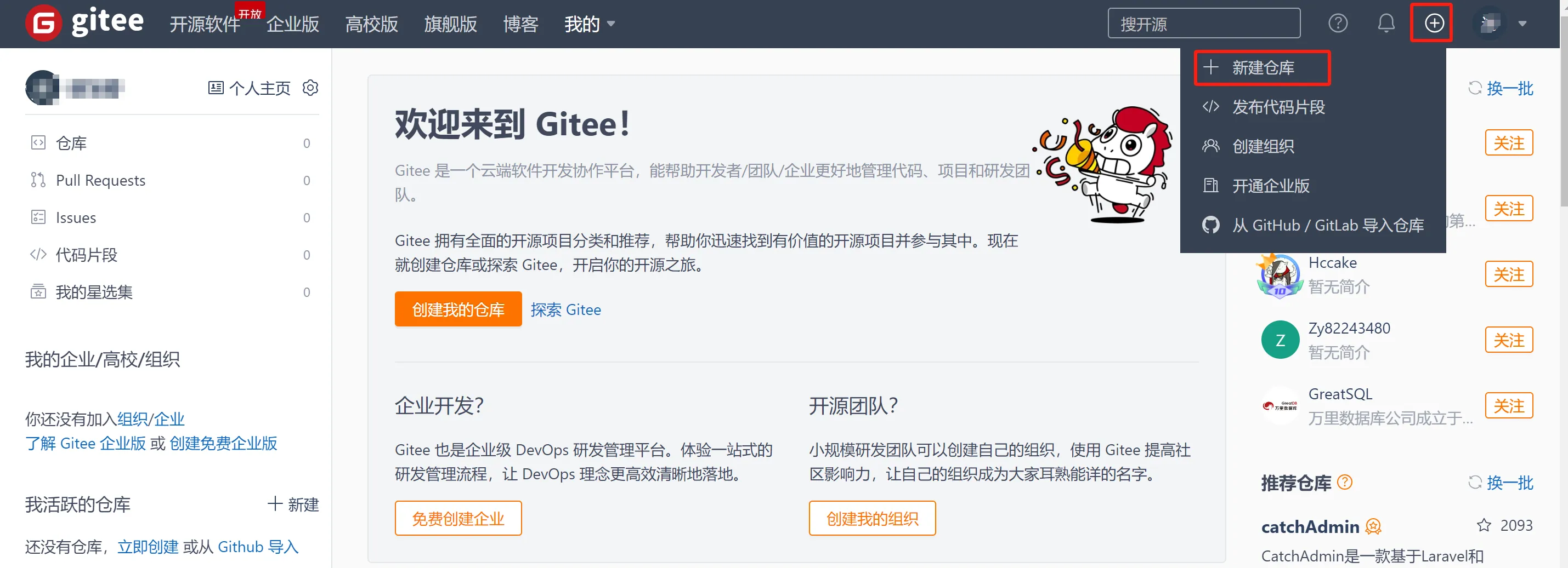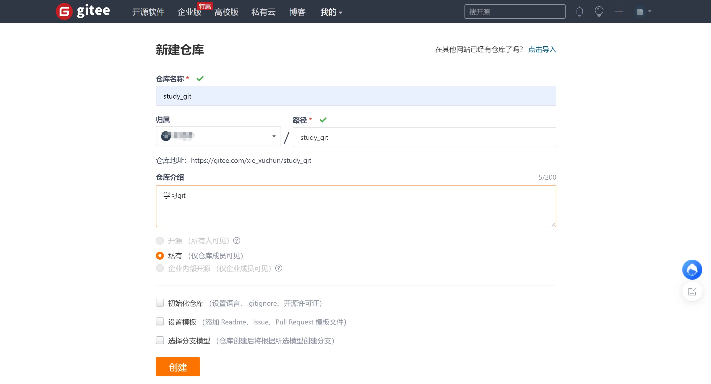 根据提示,既可以新建本地仓库与远程仓库,也可以使用已有的本地仓库。
