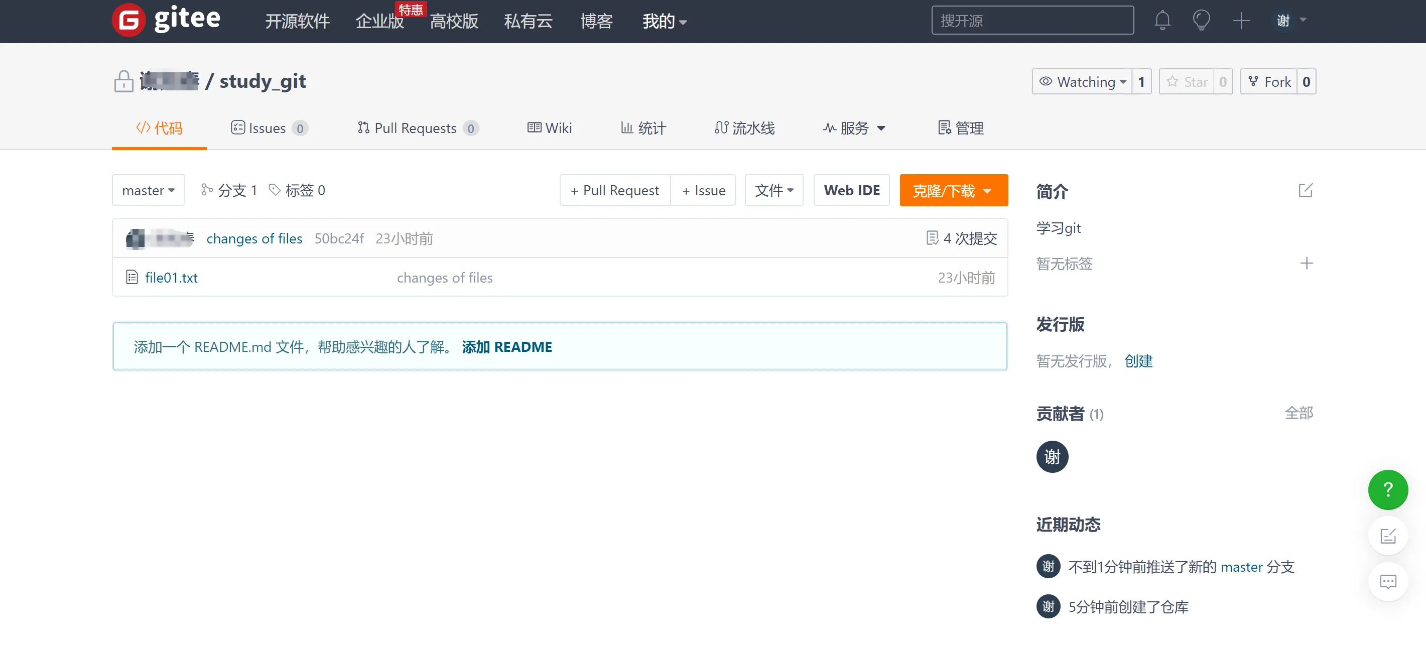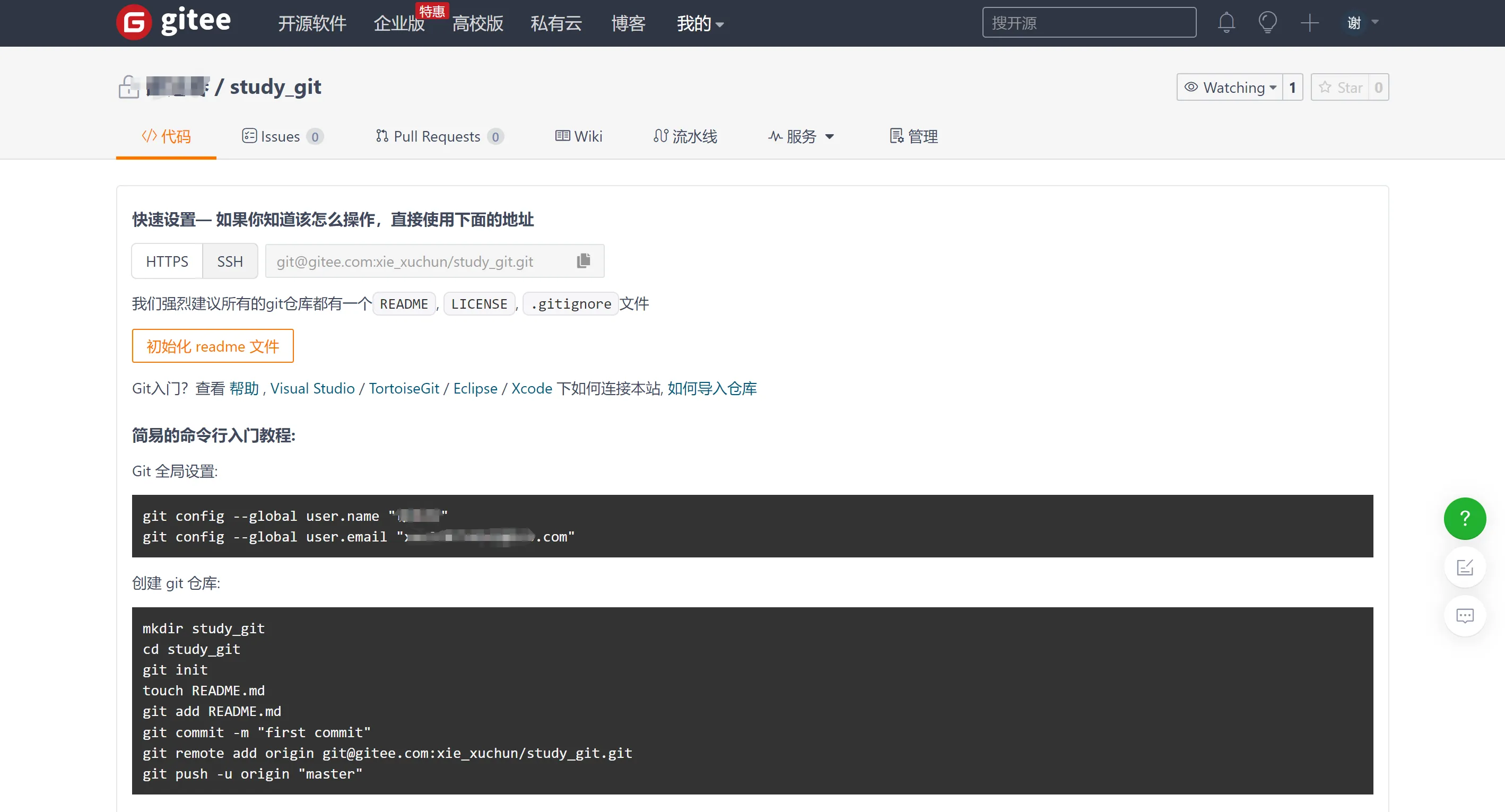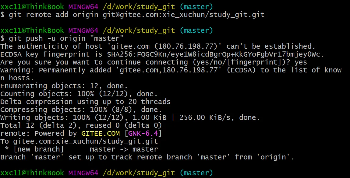 $ git remote add origin git@gitee.com:xie_xuchun/study_git.git