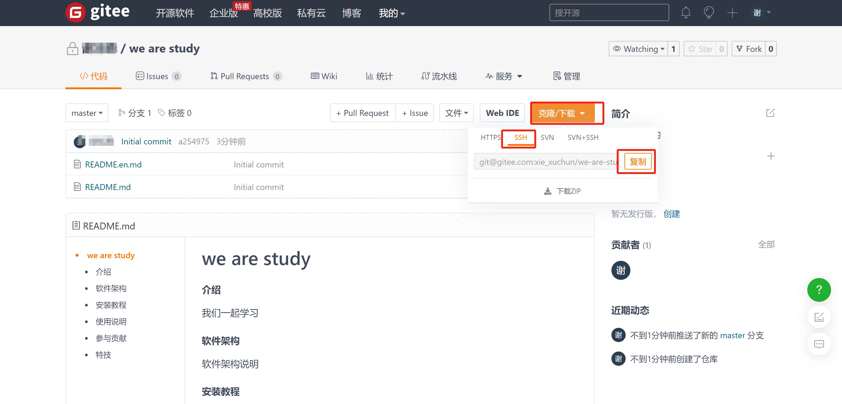 $ git clone git@gitee.com:xie_xuchun/we-are-study.git
